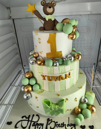 Read moreWe ordered two 3 tier cakes for 1st birthday in 3kg , they delivered it in 4 nd half kg each. As in DJ's bakery they offer 1/2 kg free for every 1kg. DARK FOREST flavour they dleivered with less sugar syrup & good spongy cake. The sweetness was on point , the cake didnt go watery even after it was kept outside for so many hours in the event before cake cutting. Thats the highlight. Now a days fresh cream cake become so watery if we keep it out for sometime , but in DJ's bakery darkforest flavour its not like that. They delivered in good comdition with 70 to 80 plates & tissues. I felt delivery charges alone little high as our location was just 10mins away from their shop. We accept cab is required for 2 big cakes. But still shop can offer something on this side as we ordered for nearly 8k. Another good thing i felt about them They suggest well , when we think about acrylic toppers for name of babies & happy birthday which came around 250 extra. They said if u want to cutdown that costs we can keep name in fondant & give. Nice service DJ bakery. Impressed with your balanced sweetness , not over sugary like some other cake shops. They also 95% matched the design as we showed in reference pictures which we took from insta. Good job dj bakery , I surely recommend them for people in and around adambakkam , madipakkam & velachery. Nearby , cost-effective & good...
