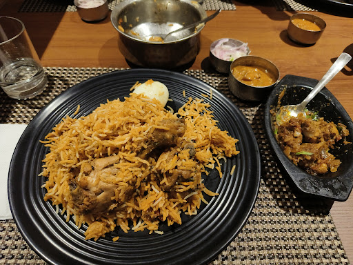 Food: I had non-veg meals. They served a large bowl of rice with a very small palm sized bowl to serve the chicken kolambu, rasam, curd. The bowl was the same size as the choppu saaman thing children used to play. This dish came with chicken side dish, chicken 65, Keera kootu, paruppu kootu, brinjal kootu with papad. Mostly veg was there. For the price its fine. But chicken kolambu is not in the right quantity. I asked for a chicken kolambu (no piece) refill and they refused it. I had to fight and get it. The reason is even with kolambu, rasam and curd I wasn't able to complete the rice bowl. Am I supposed to adjust? Is that the reason I had to come all the way to a restaurant? Really? Restaurant owner must be a great fan of plain rice. Side dishes like kongu chicken uppu curry, prawn milagu varuval was good. Japan chicken curry tasted like mayonnaise and knorr soup cross breed. Biryani was good.