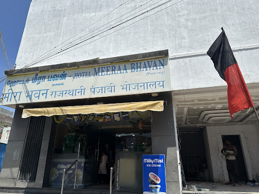 Some of the must-try dishes at Meera Bhavan include Veg Thali and a wide range of North Indian dishes. The Butter milk and chutney are also excellent.