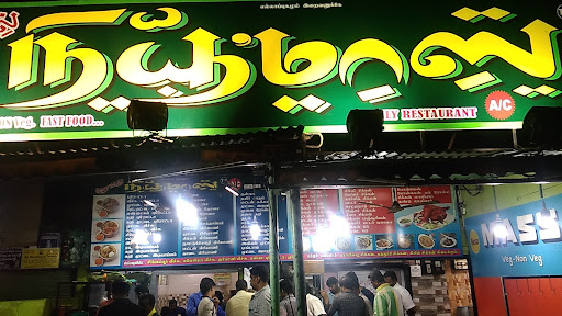Thinking of a traditional Muslim marriage briyani? Then this is the very right option for you. Trust me you'll get a very good tasty briyani here at new mass. Try mutton biriyani, since they prepare only mutton briyani and of you want chicken briyani, they will take this mutton briyani rice and add chicken gravy pieces. So that's not as good as mutton briyani. So always but only mutton briyani. Best time for mutton briyani would be 12.30. Hot and tasty briyani will be ready to serve. Quantity is Okay for one person. But that was not sufficient for me. So I got additional parotas. But not happy with the parota. Initially they make it as a round thick piece. Now they are folding it in a square share of thin layers. Which is not so good. Here they are missing our our Madurai trends. Extra items like mutton chukka, kudal gravy, chicken chops with onion fry, egg mass are at a traditional level. You must try it once. When comparing prices few items are at average price and fee are highly rated. Mutton briyani for 140 is Okay. But mutton chukka is also 140. Quantity is very less for 140. You'll get less than what you get in briyani. Similarly chicken 65 priced around 60, all Chinese gravies are available at 40 rupees. Kudal gravy at 80. As I said few items are averagely priced and few are too costly. Talking about taste. No compromise on that. I'll give give out of five for taste and authentic food served here. Egg kothu parota and chicken kothu parotas are very famous here. But my suggestion and favourite food here would be mutton briyani. They prepare it with seeraga samba rice and in lite brown color. I'll add images of it. You'll love it for sure.