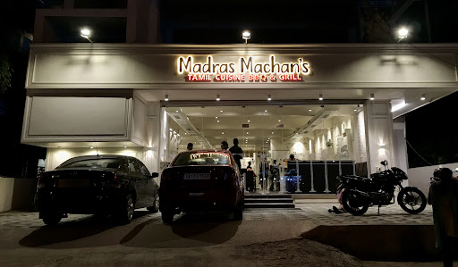 Maybe the brightest lit restaurant on OMR, Karapakkam is the recently opened Madras Machan’s. As soon as you enter, the exciting walls welcome you; the black hand drawn sketches on the wall are so full of life that they infuse you with a curiosity everytime almost invariably. The Menu has reasonable no. of dishes for variety, mostly Tamil Cuisine and some of them are brought from farthest corners of Tamil Nadu with a flavour of authenticity. Dishes we tried: Vazhaipoo Vadai - The vadai tastes good enough, but the coconut chutney could have been better or maybe they could have served a different spicier chutney altogether. Chicken Karandi Omlette - A reasonably sized Omelette ball stuffed with chopped masala chicken, if your looking for a twist with the eggs; good one! Plain Dosa - Alert, comes only with Coconut Chutney on the side, but nothing else. The least they could do for this price range, is to add a Kozhambu for the side; tastes the usual. Madurai Spl Kari Dosa - Thick Dosa spread with chopped chicken masala paste on top with Chicken Kozhambu & Coconut Chutney for the side; tastes yum! Elaneer Payasam - What otherwise we call Thaengaai Paal, was a delight to drink. Coffee - Good, but not how I would like it! All of this totalled upto Rs.819 (for two). By way of things, I had to visit the restaurant almost thrice in a week, and never was I disappointed in terms of the quality of food or taste. Their Biryani, Kothu Parotta & Paruthi Paal Halwa are some of the must-tries. The restaurant has a decent parking space for both bikes & cars right-in-front, incase you were wondering. To sum it up, a very fine restaurant with the pricing...