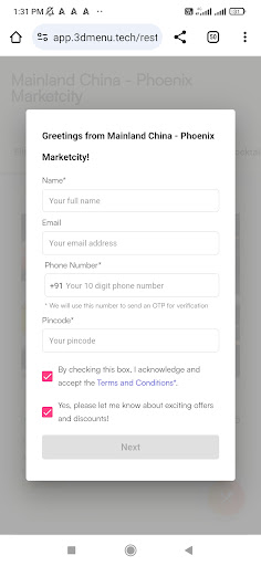 When I arrived, there was no one at the reception to greet or assist customers. Trying to be proactive, I scanned the QR code available to view the menu. To my utter dismay, instead of simply displaying the menu, the system demanded my mobile number along with an OTP verification just to proceed. This is a flagrant breach of privacy and borders on illegal activity. Why on earth would anyone need to provide their personal mobile number merely to view a restaurant's menu? This is not only invasive but highly suspicious.