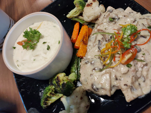 Read moreThe place was a surreal experience. We went on a Wednesday afternoon. The cafe was empty and we had a cozy experience. The cafe was lush green with plants and a lawn. We ordered Chicken Harissa kunafe, Three cheese veg Lasagna, Chicken Al A fricassee, hot chocolate and Shirley temple. I loved the outer crispy texture and the soft chicken and cheese stuffings inside the chicken harissa kunafa. It had a buttery flavour to it. And the dip was too good and went well with the dish that I stole the dip for other dishes too. The three cheese veg Lasagna was pretty decent and it was cheesy. The Chicken Al A fricassee was literally heaven and the sauce was creamy and drool worthy. It was served along with grilled veggies. The hot chocolate was nothing special. The Shirley temple was too good and it was a refreshing pick. The price is pretty expensive but the food items were worth the price except for the hot chocolate. Do visit this place if you're up for a romantic date or even a hangout with your friends. And don't forget to click some cool pictures and thank me...