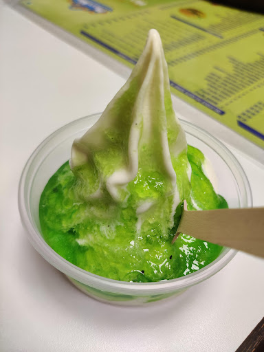 Vibrant counter-serve ice cream parlour preparing sundaes & other customized sweet treats.