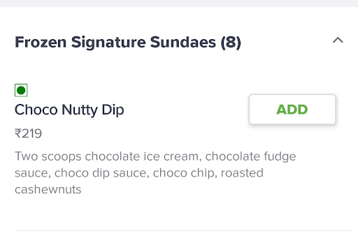 Read moreThey cheated me when ordering from Swiggy. I ordered the signature iceream (Choco Nutty Dip) as per swiggy it's two scoop of Chocolate. But they gave me one scoop of chocolate and one scoop of vanilla. This is pure treacherous act and I condemn this strongly. Doing for online customers like this is pure scam and not acceptable. I want to know why one scoop of vanilla softy was used when placing order for Choco Nutty Dip??!