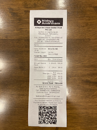 The entire experience was beyond frustrating, and the staff’s arrogance and lack of professionalism made it even worse. This is a complete failure on every front – from the food to the service – and it has completely tarnished the reputation of Nithya Amirtham for me.