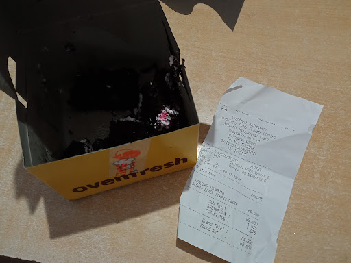 The cost of black Forest cake in normal bakery is 40Rs. Since we are getting only one piece for Kid regularly, we thought we ll buy from standard quality shop. Here a piece of black forest cost 68 Rs. When I purchased few days back also some kind of fermented smell was coming from the cake, I thought it may be due to cherry. Today again I purchased from the same shop, when is gave to my kid, he said it's sour (Pulipa iruku), when I examined the whole cake was smelling bad. I went back to the shop and enquired them were telling if we keep the cake outside for more than half an hour, it will smell it seams due to the Cherry. When I can smell 'Fungus', argued and got the money returned. There is no expiry or date of preparation is mentioned for Cake items especially Fresh cream.