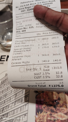 Read moreMy recent visit to Plamshore in Anna Nagar was a truly unforgettable experience. The restaurant's offerings were impressive, with an diverse array of starters that catered to various tastes and preferences. The Mandi Biryani, in particular, was exceptional - a perfect blend of flavors and textures that left a lasting impression.