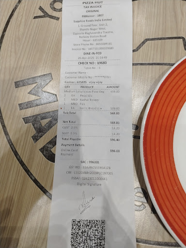 Read moreI'm a regular Pizza Hut customer but was let down by my recent visit to your Hosur location. The experience did not live up to Pizza Hut's usual standards.