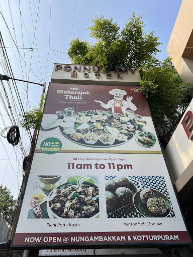 Read morePonnusamy is a legendary restaurant. Moreover, this Branch in Royapettah is one of renowned one. After seeing a promition about the Large Thali a month back, I called up the restaurant recently to check its availability. Fortunately, it was still On. I was told to confirm the order a day before which was unusual. As the Thali itself was an unusual one I could understand the need. The cost of the Thali was Rs.1500 and the restaurant allowed it being shared by max 4 people. You get more than 30 items in it with just few veg items. The Ambience was good enough compared to many Chetinad restaurants. It was super crowded being a Sunday amidst the long Pongal holidays. After waiting for nearly 20mins we got the table. I had confirmed my presence and reminded them about my special Thali order. Still, we had wait for another 15 mins after getting seated. Then came the big Thali. Wow!! Never seen such a big plate. It was at 3-4 feet in diameter. There were many items in it. Chicken soup, Crab soup, Chicken dry, prawn fry, Mutton liver fry, Chicken Biriyani, Mutton biriyani, Veg Pulav, curd rice, white rice, Naan, chappathi, Bajji, pakoda, panneer butter masala, papad, vatthal, Banana, Beeda.... Chicken gravy, fish gravy, Mutton gravy and some more items.. OMG it was a feast and I'm sure one person can't finish it. Probably, 2 foodies can. We ordered 2 Thalis for 6 adults and 2 kids and it was sufficient. The bearers gave extra rasam, curd and rice too. Taste of few items were very good and few was just okay.. Overall, it was a good experience and a One time...