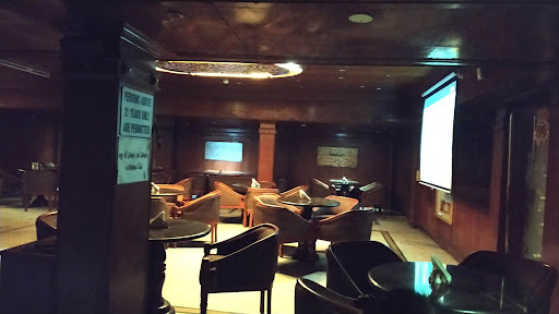 Casual, wood-paneled bar at the Raj Palace Hotel featuring mocktails & spirits.