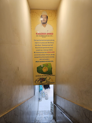 Read moreRahmaniya, Ambur. I find it definitely much better than other options. First of all, no oil coating on the leaf and hands when eating. Rice was spot on. Perfectly boiled. Soft and easy to scoop together but each grain is separate on the leaf. Light and non greasy. Mutton was tender and not fibrous at all. Ticks all my boxes. Only catch is the bazaar road being small and difficult to navigate. They said the branch on the highway is also the same. May be will try next time and make a comparison call.