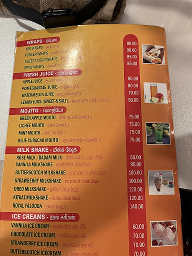 You can never expect such an ambience anywhere nearby. This is located right outside of the Arulmigu Thiyagarajar Swamy Temple. Food is authentic and taste wise it's very good. Price looks bit expensive for some of the dishes. We tried Paneer roll, Paneer Wrap, Royal Falooda, Peri Peri French fries and these are the best suggestion I could give. Rose milk and Badam milk tastes bit watery. Ambience is again very good and totally a worthy place...