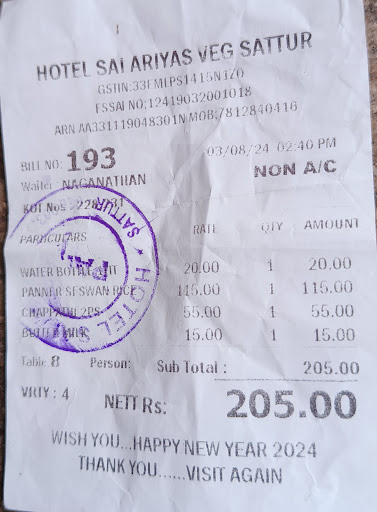 Read moreSuperb Hotel for Veg lovers. Located very near to Bus stand. Prime location of the town indeed. Cleanliness was good. Variety of dishes available here. Mini tiffin is one of the famous here, available only during morning, in which they will include all dishes, including coffee/tea at the end, and costs only 70₹. Should improve the taste of...