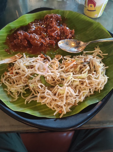 Enter...a dinner plate with a neatly cut circular banana-leaf placed on it. Okay, fair enough! We were also told that there were no cutlery forks in the restaurant, and that there were only disposable areca-nut forks available, so we were more than happy with those. Imagine eating noodles with only a spoon!