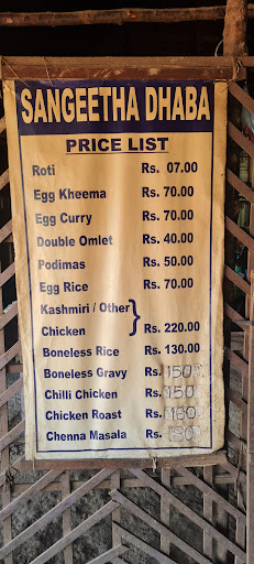 ย ย ย Read moreThis place provides food at very cheap rate. You will get good quantity of food for what you are paying.Good place to go with friends and enjoy a perfect Dhaba food experience.Rotti and fried rice are the main course along with different varieties of chicken gravy and starters.The ultimate thing about sangeetha Dhaba is its Payasam. The quality was great 2 to 3 years ago, now it is not to that great still a must try one.Overall 8 out of 10 would be...