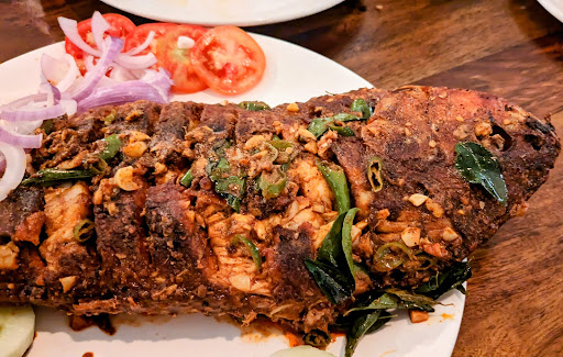 The Food - try the tawa fried masala prawns - we enjoyed that the most. The Tiger prawns - we ordered in Butter and Garlic sauce but had tomato (sauce?) too which we didn't enjoy as much but here the excellent service came to help here. They were okay to change the dish. We also tried the red snapper - all the sea good was fresh and they have a live lobster tank in the kitchen. The red snapper was cooked in the same tawa masala - it wasnt what I remembered from Moonrakers sauce but fairly close. We enjoy spice and again the staff brought us some sauce on the side and we polished off the fish.