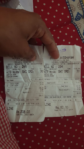 Read moreWorst experience with the order taker and the server... went in by 10 for food and ordered two chola poori and asked for lime soda immediate reply from the order taker was no lime soda and wife told she saw when entering the person taking lime soda and asked him to enquire abt it he went and returned saying there is lime soda so we ordered two of it. After finishing food we wanted to order more food and asked the server what else is there and he said they don't have any food and by 10.30 they close and we thought we must be late so didn't want to trouble them. The bill timing was 10:16 pm and after we got up we saw bunch of people coming and the same server went to them and asking what they want and repeating what and all they have. So we thought we will get sweet and ordered jam jam and after that asked for it. We ate and asked for bill and that time the order taker and server both were arguing how much for the sweet and the server was saying 20 per piece and the order taker said 25 per piece and asked the server to get a bill for Rs 50. After paying the bill and tips we went to the cash counter and asked what is the price of the sweet and the cashier said it is 20 per piece I asked him showing the bill why I got this 50 rupees bill and he was speechless he immediately called the server and he said the order taker told him to get this bill and when they called the order taker he was not coming and moving around later when he came he had no answer for what he has done. My request if you don't teach your staff the service soon many negative reviews will be posted by many. We pay to eat and food is not served free and we also expect some respect and not treat like this and trying to cheat...