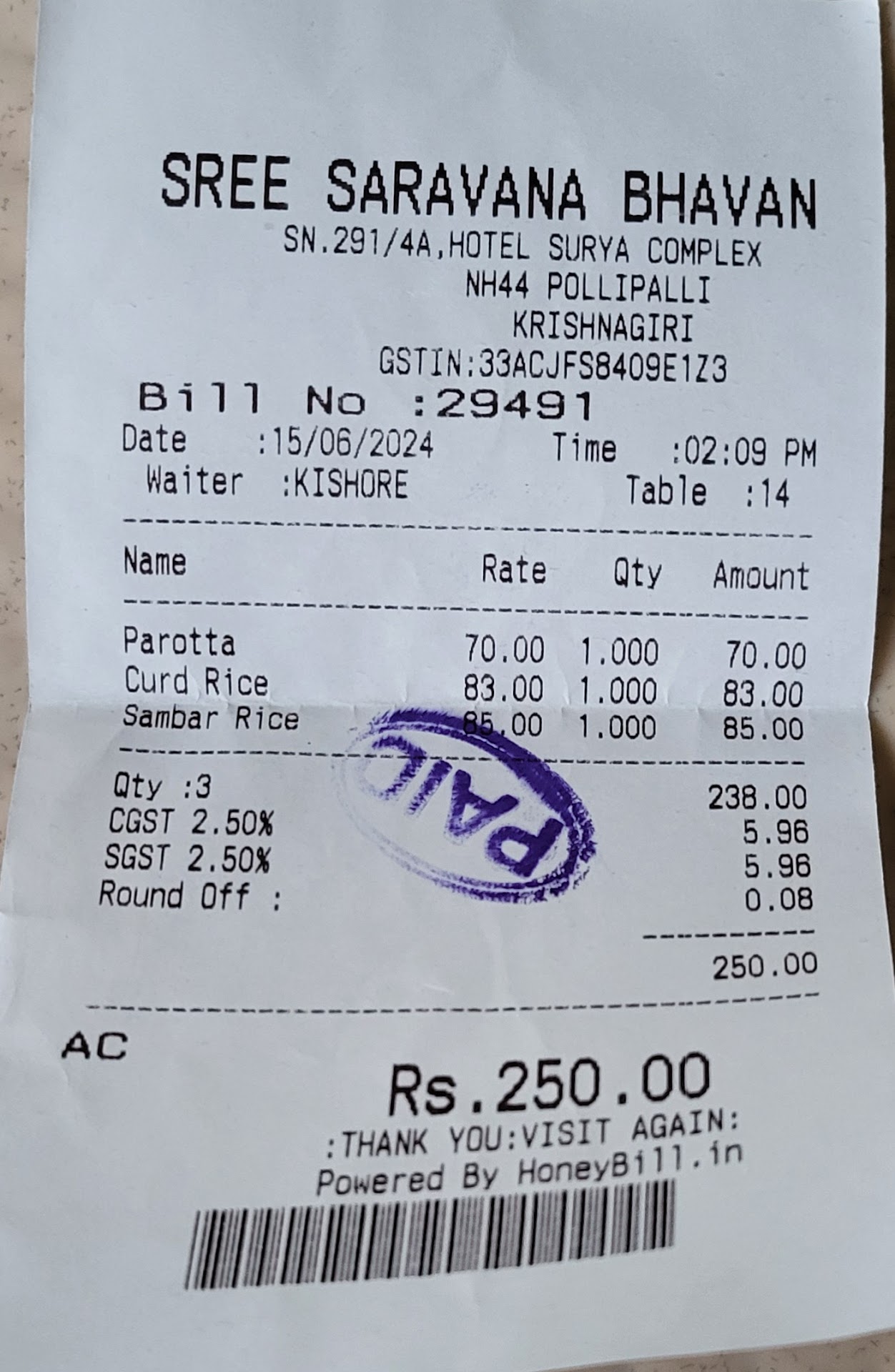 Sree Saravana Bhavan Veg. Treat - A Highway Gem for Authentic Tamil Nadu Flavors
