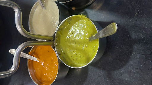 I was returning to home from office. It started raining when I was crossing after Perungudi Toll. I stopped and waited near a shop. Waited for 10 mins. It was still raining. Then thought of trying nearby restaurants. Googled. Hotel Mahalakshmi was just 15 meters away. Impressive reviews. Went there. The hotel was small and moderately clean. Ordered Chapathi (₹40). They first brought banana leaf covered plate with 2 kurumas. Then chappathi was served. The taste was good. Must be sufficient for a person. Having read about the chutneys, Ordered Rava Masala Dosai (₹50). 3 varieties of chutneys and sambar were given and dosa was served. As pointed by others, the chutneys were fresh. Also the quantity of chutneys were more than enough.