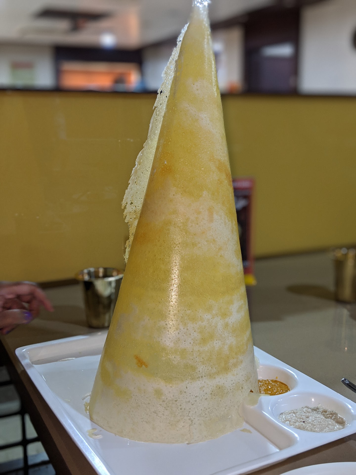 Happy New Year to all!! We were passing through Salem on new years' day and stopped at this venue for breakfast.Good clean place to "break a fast". They started off by serving complimentary mini jhaangiris as this was the 1st of Jan (celebrating our earth making it once around the sun, again!!). We had pongals, vadas, ghee roasts, puris and coffees (are those plurals even valid?). Ordering and service was swift - both serving up the dishes and clearing them as their contents vanished. We were there at around 715 am and it was full of local patrons. The ones with walking shoes on, in particular, caught my attention and made me wonder...if their pit stop was just before or immediately after...but the pongal and vada placed in front of me helped take my mind off such futile thoughts....you see...quick service helps. Sides (assortment of chutneys) were replenished as soon as we gobbled 'em up and believe me that is a tough act to master even for seasoned f&b veterans. The aasai dosai team did it and not once we had to ask for it. It was in "auto" mode. Made me look at the team in disbelief to check if AI robots had replaced humans on new year. That was not case here. Senior citizens in our group were served with finger bowls (service differentiator from their peers, no one asked for it)..while young ones in the gang "army crawled" to the wash making a resolution never to stuff themselves to inaction again that day. Been here couple of times earlier in 2017 whenever passing thru Salem..but now they have added additional parking and restrooms adjacent to the said property. Good option for traditional vegetarians....