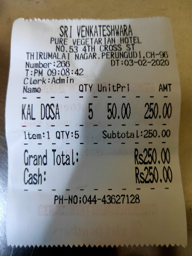 I entered the hotel it was an average hotel. Non AC. Lots of hustle. I and my friend had 5 Kal dosa(normal dosa in Chennai). I went to billing counter and he asked 250 RUPEES. i.e. 50 RUPEES PER PIECE.