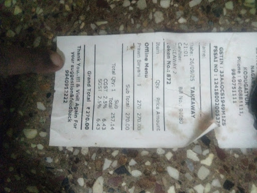I asked for "fish briyani" but due to noise the cashier didn't hear me well so he put veg briyani said it's 190rs (I don't blame him for that since it's too noisy anybody would get that wrong) Since I don't know price for items i paid and took the bill
