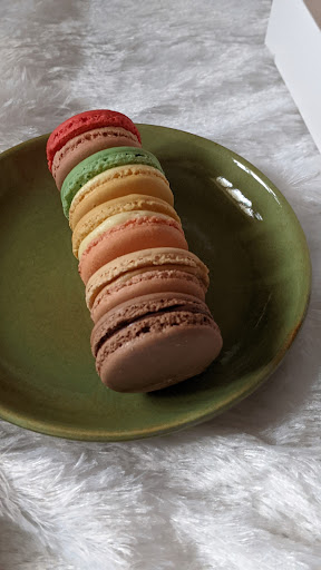Cheerful bakeshop creating cookies, cupcakes, macarons & custom cakes in a cosy space.