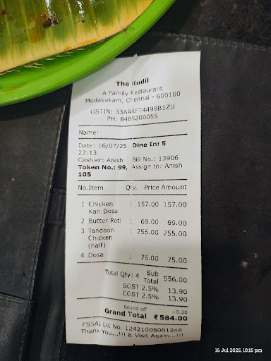 Visited The Kudil Restaurant, Medavakkam on 16th July around 9:30 PM with a close friend, hoping for a relaxed dinner with my friend. What followed was one of the most disappointing dining experiences we’ve had in a long time.