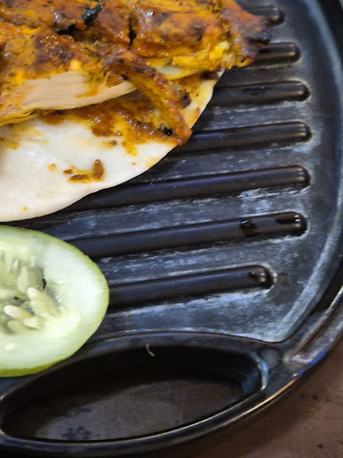 Then came my alfam. As I began eating, I noticed that the black plate had white flakes — either salt crystals or possibly mold — which I only saw after taking a bite. I immediately informed the waitress, who silently took the plate back and returned with the chicken on a different plate. I noticed her hands were still covered in marinade as she transferred the chicken by hand to the new plate. Even that plate was visibly dirty. At that point, I had completely lost my appetite.