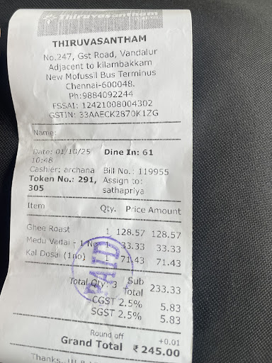 Thiruvasantham has truly earned my respect. In a world where most places either compromise on quality, service, or cleanlinessāthis restaurant delivers on all fronts.