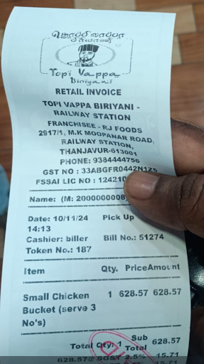 I visited Thoppi Vapa Biryani in Thanjavur one afternoon. The restaurant is located conveniently near the railway station, making it easy to access.