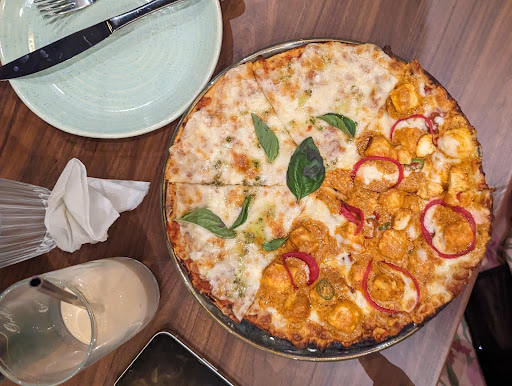 Food Highlights: • Neapolitan crust – 10/10. Perfectly done — airy, soft, and flavorful. • Thin crust – Light and crisp. • Kerala Roast Pizza – A brilliant fusion. Spicy and well-balanced — loved it. • Chicken BBQ & Paneer BBQ – Good, but didn’t stand out much. • Slice of Pink (Pork Pepperoni) – Rare to find pork pepperoni and absolutely delicious. • Margherita – Classic and satisfying. • Crispy Fried Chicken Strips – Crunchy on the outside, tender inside. Comes with a sweet-spicy chilli honey dip. • Crispy Fried Oyster Mushrooms – Even better than the chicken strips. Will choose this over chicken next time! • Iced Mocha – Rich, refreshing. My cousin even ordered a second. • Hot Chocolate – Extra Thicc – A bit too rich and cloying. Should’ve gone with the regular version.