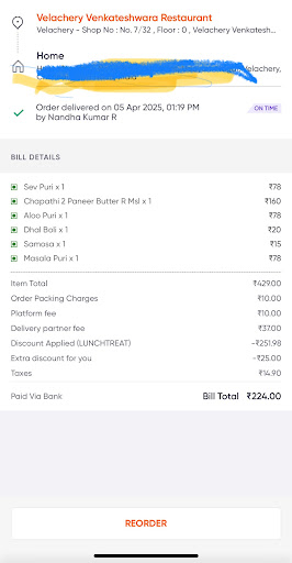 Read moreThese people are frauds! I ordered using Zomato for 2 days from different branches which was a very big mistake! Without my consent they sent me different items to that I ordered I thought they only did this at Velachery branch but the same thing happened with Adambakkam branch as well! I even gave specific instructions not to send anything alternative to unavailable items and refund the money for the same. But they sent different items anyways even without asking me! I reached Zomato and they support the restaurant! Both are frauds! Looting money in a new way! People use Zomato and Swiggy if they have elders at home which would be easy for them but these kind of frauds! Disgusting!...