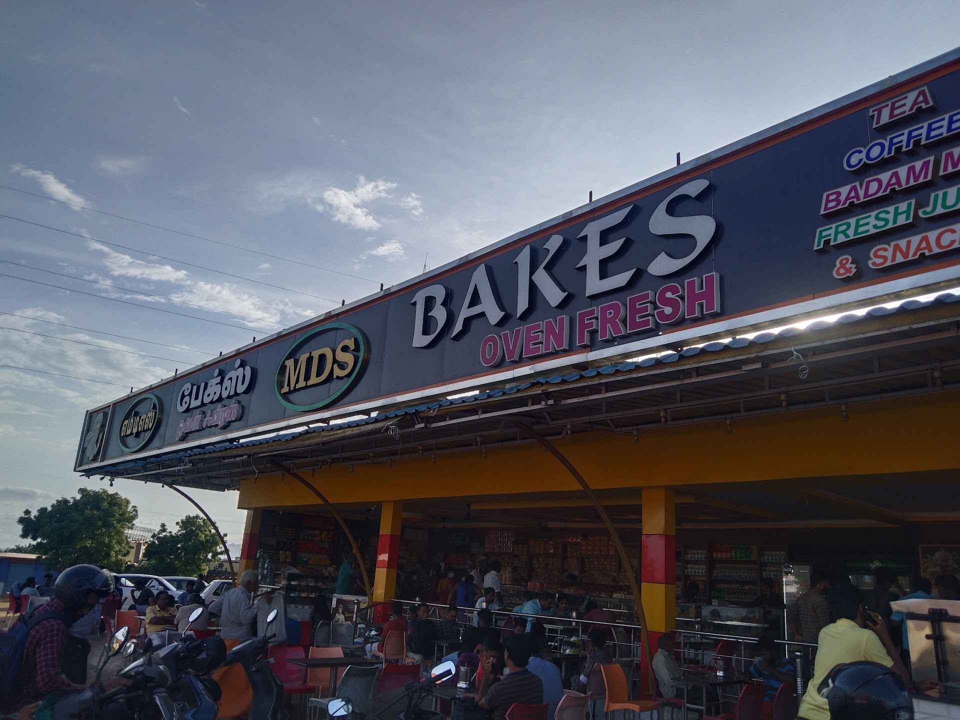 MDS BAKES is one of most place which for the backery in maps. In MDS there be present near the signal 🚦 . Lot and lot of space for park the bike 🚲,car πŸš— ,tour buses and lorry πŸš›. good place to enjoy with family and friends. Good option for tea β˜• coffee β˜• and snacks with family and friends any time. All time they can serviced tea and coffee.Hot drink's like tea β˜•, coffee β˜•,milk πŸ₯›,badham milk and black coffee,,,etc.cold dirnk's like juice with fresh fruits and soft drinks are available here with cold state and normal state .puffs recipe like egg puffs, mushroom puffs, vegetable puffs,,,etc. Bread omelette, cauliflower chilly ,pani puri scanks also available here.chicken noodles,egg noodles, chicken rice ,egg rice. Shawarma , grilled chicken also available here with best quality.Brithday cake πŸŽ‚ are available here. Have place to make fun with birthday near the MDS BAKES. Peices cake are also available here."Come with your family and friends make the moment happy in MDS BAKES...πŸ€—πŸ₯°πŸ€—.