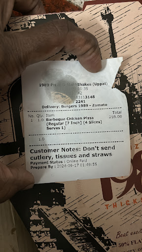 My experience at 1989 pizza and thickshakes boduppal , was extremely disappointing. Not only was the food spoiled and inedible due to a strong unpleasant smell, The chicken colour was turned into green (thikshaken pasta was good) but the staff's behavior was completely unacceptable. They were rude, unprofessional, and showed no regard for customer satisfaction.