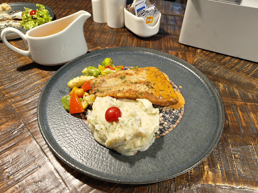 The crockery was impressive, and with the great ambiance, Iâd recommend it more for a quick coffee and light snacks. We ordered Chicken Garlic Soup and Mushroom Soup, which were more clear than creamy. The Malai Tikka was okay but had a small portion, while the Caribbean Fish with Cajun Sauce was actually very good, though the fish portion was smallâit was a single, small fillet, and for the price, they should offer a larger or two medium-sized fillets. Overall, this place is best suited for those who prefer smaller portions, enjoy a nice ambiance, and are willing to pay a premium.