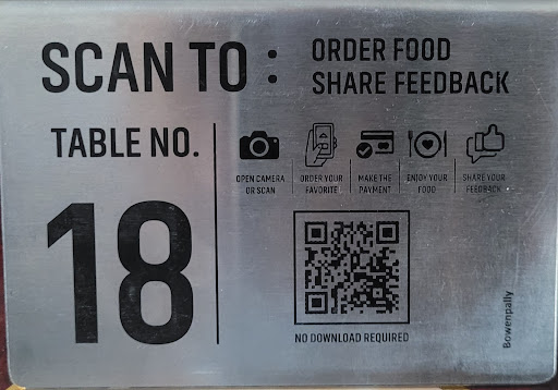We went there around 9pm, we saw bar code on the table to order so we placed order using it, for 20mins no one turned up so we went to check at the counter, then they said sir bar code based order system is not working.... pathetic... if it's not working then why it's there on the table and accessible to customers?
