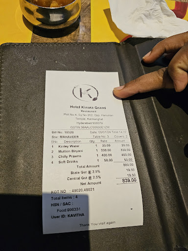 Read moreHotel Kinara Grand @Jillella ×Roads near Famous Karmanghat Hanuman Temple, is situated right on Main Road connecting Uppal ×Road, LB Nagar Junction to Airport. It was once Swagath Grand chain Hotels to now Kinara Grand is certainly beautiful place for Weddings and other such functions.Hotel has got THREE HALLS, each with a capacity of 400 PXs with a flexible option of food / bevarages/ Guest rooms and indoor or outdoor activity as u wish on LAWNS. Management probably allows one to have your own Alcoholic beverages to enjoy or from with in. Snacks like Apollo fish, Chicken 65 or other varieties of Veg are good where as Food for Lunch or Dinner depends on ur choice.Taste of the food will be so so.. Cost wise it is affordable for many and one can try to...