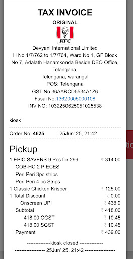 KFC Warangal delivers on taste, and it’s still one of the go-to spots for fried chicken lovers in the city. But with a bit more attention to cleanliness and service, it could offer a much better overall experience. I’d recommend it for a quick meal, but hope the staff improves on the hygiene and...