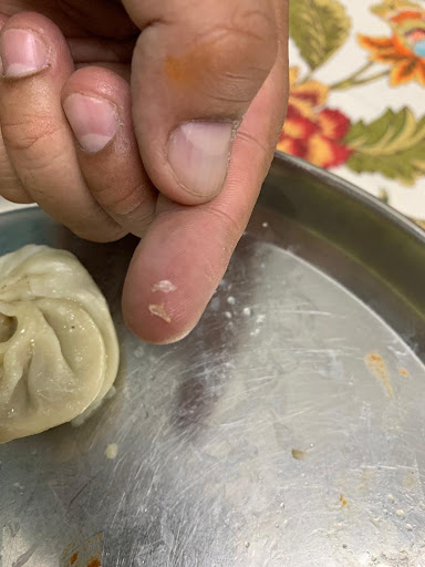 I have been a regular customer for momos for this store. Since some past couple of my momo picked up from store I have observed small plastic bits in it which I ignored for a while but until I manage to grab some closer look and pics of the same. I did raise the concern to the store immediately but it seems they are least worried about the quality of the product and risk they put the customers into. Attaching the pics for ref and hope...