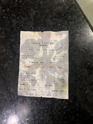 A nice little place for vegetarian tiffins, just out of Hyderabad limits on the Warangal highway. It is much before the toll road and hence good for a decent breakfast/tiffin before you get onto to the toll section. Offerings are limited but taste of offered varieties are much better than normal way side joints. You need to buy coupons before hand and x collect delivery - self service. Food delivery separated by type of tiffin such as idli, dosa, coffee, etc. All items are very tasty. Best part of the joint, besides food, is the environs - feeling of sitting outdoors with a view of traffic. Only negatives are no service and no sambar ! But chutney, though palli based, is of much better quality and very tasty. Coffee is not that good, I thought, although it is filter coffee. Opens at 0700 hrs itself and hence best for breakfast. But it is open till 10pm, so good for even dinner(tiffin). Whole family and especially children would love the environs. Must visit for all. If you are getting on to Warangal Highway and want to have tiffin, avoid all other joints and rush to Taaza Tiffins - you will not be...