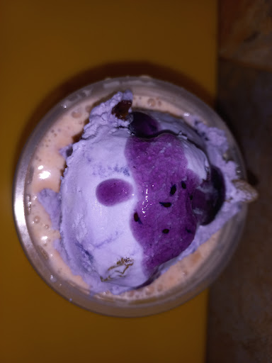 The presentation of my falooda was attractive, but the taste was average. The ice cream came with a black currant syrup on top.