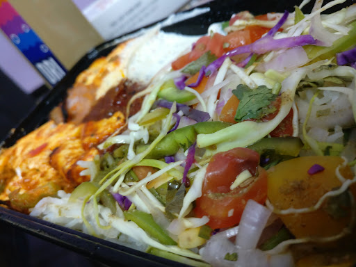 This fusion box includes the combination of Rice and Paneer Makhni cooked in spices.They serve it with the right amount of spices in it. Perfectly cooked long rice, with a very good quality of spicy paneer. They also serve three kinds of chutneys one with the yogurt mix, another chutney is spicy, red one made from red chilies, and another one the green chutney made from fresh coriander and green chilies. They also serve a side salad including red tomato, capsicum, onion, cabbage, fresh corns mixed with some spice mix and coriander.