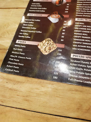 Menu is extensive having burgers, pasta sandwiches, rolls, potato spirals, Maggi Noodles, Nachos, Breads, pizzas, French Fries.