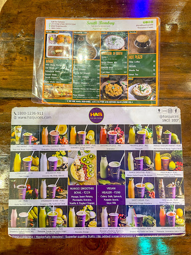 Read moreSouth Bombay as name suggests it serves primarily South Indian Cuisine along with some North Indian snacks like Pav Bhaji, Chole Bhatoore etc. There fusion to South Indian is very good twist and tastes also good. We tried Mexican Roll Dosa, Pesto Dosa, Mysore Masala Dosa, Idli Manchurian, Mini Mulgapudi Idli, Pizza Uttappa, Pav Bhaji. Every this was really tasty and yummy and Out of above my favourite was Mexican Roll Dosa and Pizza Uthappa. They have juices also which is served under Has Brand name. In juices my favourite is Sitafal Coconut.