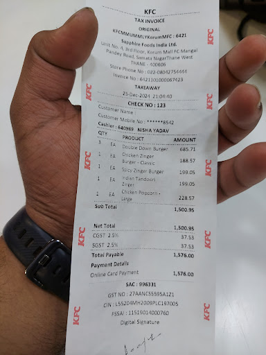 I am writing to express my deep dissatisfaction with the recent experience I had at your KFC outlet located at Korum Mall, Thane West, near Cadbury Junction. As a regular customer and a frequent visitor to KFC, I have always enjoyed your food, but my recent visit left me extremely disappointed.