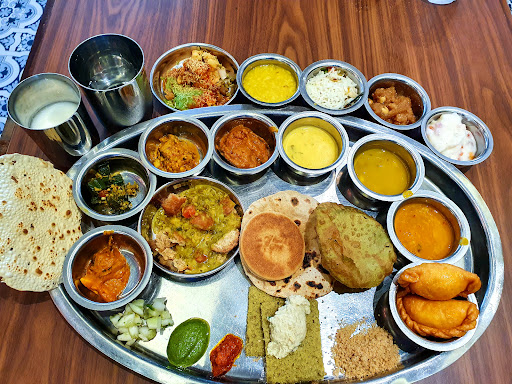 Thali includes Dhokla: Soft and juciy much on sweeter side Kachori: crispy outside and filled with lots of masal inside which included with different chutneys such as lasson chutney, pudina chutney Vegetables They serve total 4 vegetable dish (1) curd brinjal- sweet & sour in taste but authentic flavoured comes out of the dish (2)panner bhaji- Tender pieces of panner with creamy panner gravy (3)Rajma bhaji-Spicy yet taste with delicious rajma beans (4)Tamatar aloo bhaji- My favourite of all which has there authentic masala which gave immense falvour to overall dish Breads Methi thepla- soft theplas had with thecha(Mharashtrian thecha which mean green chillies grindy together with some fresh garlic) Corn roti- served with sweet jaggery Butter roti-Buttery roti with soft texture Dal Gujarati dal: sweet dal which was amazing in taste Dal tadka:spicy in taste accompanied with steam rice Kadi: sour & sweet at same time which was delicious in taste had with papad and pickle Tadka khichadi:Spicy tadka & much softer rice which old age people can easily have has it was too soft & taste at same time Chaat Dal baati: moong dal which was just mesmerizing in taste with crispy baatis Ragda pattis: Tender potato patty mixed with spicy,sweet chutney & some fresh ragda which is white chana but its taste was mouth watering Chass Last but not the least had this amazing chass which was sour & had coriander powder mixed with it which gave delicious...