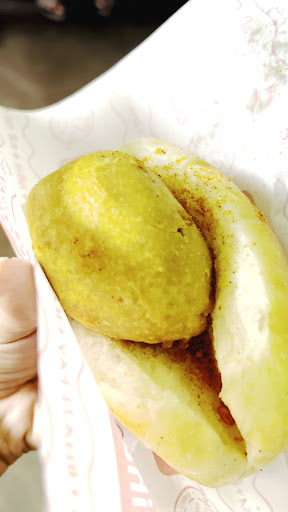 Imagine a golden-fried potato dumpling, seasoned with a mix of spices, encased in a fluffy bun (pav). The first bite gives you a burst of flavors—spicy, tangy, and savory.