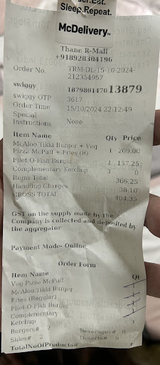 I am writing to express my dissatisfaction with the service I received from your McDonaldâs outlet at R-Mall Thane. I placed an order via Swiggy for McAloo Tikki, but instead, I was delivered a McChicken. This is not just an inconvenience, but a complete violation of dietary preferences, as I am currently following a vegetarian diet.